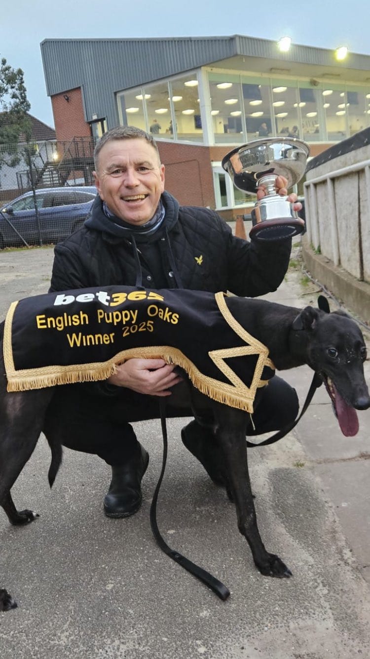 Trained by Kevin Hutton for Billy McMahon, Gary Shelley and Gary Thompson, the March 2024 youngster won his heat by seven lengths and was then a massive eyecatcher in defeat following a poor starts in the semis.