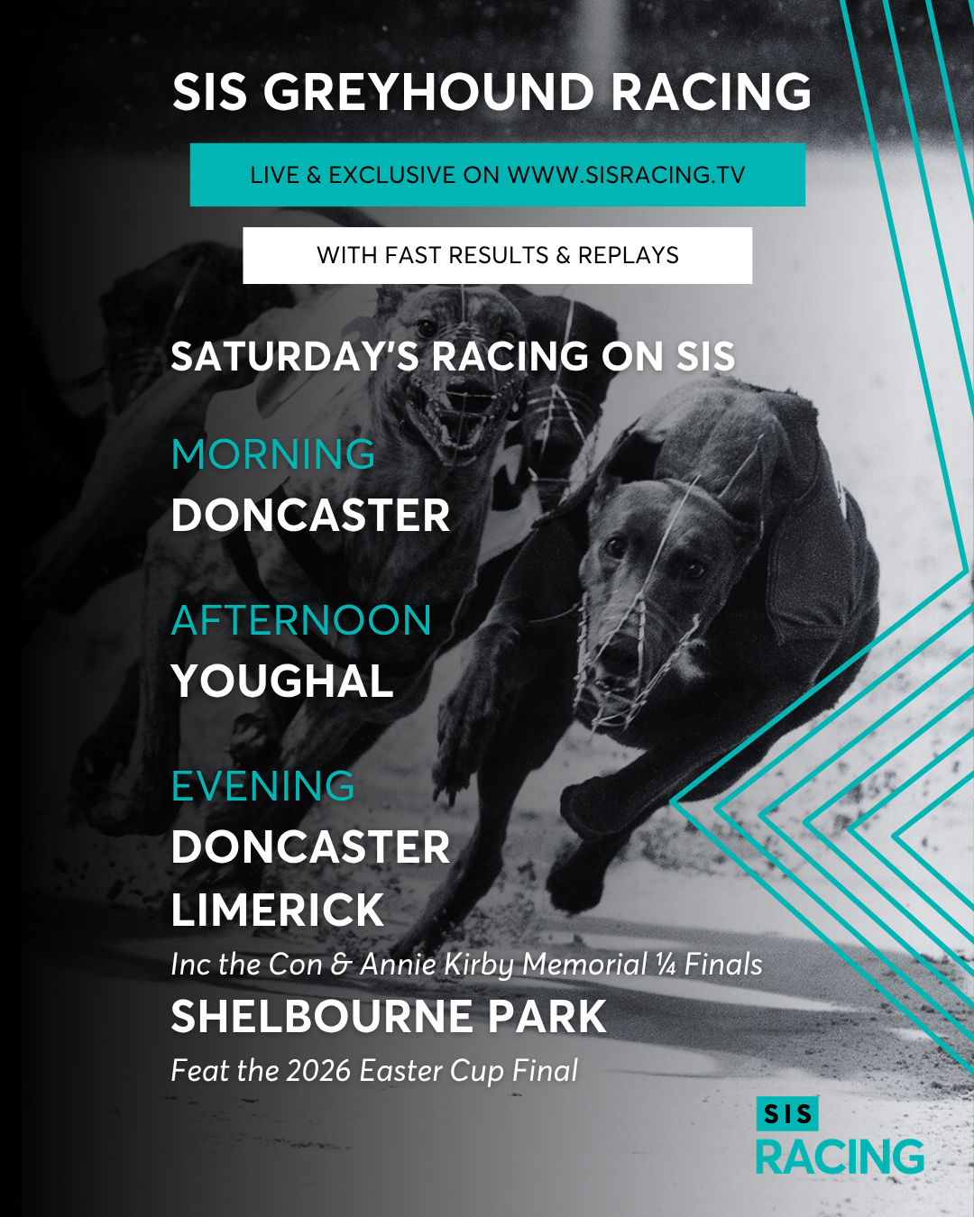 There is earlier afternoon Irish action on SIS at Youghal where the strongest fancy is Derek Kehoe's Slaneyside Winx in an S7 sprint over 325 yards at 2.44.