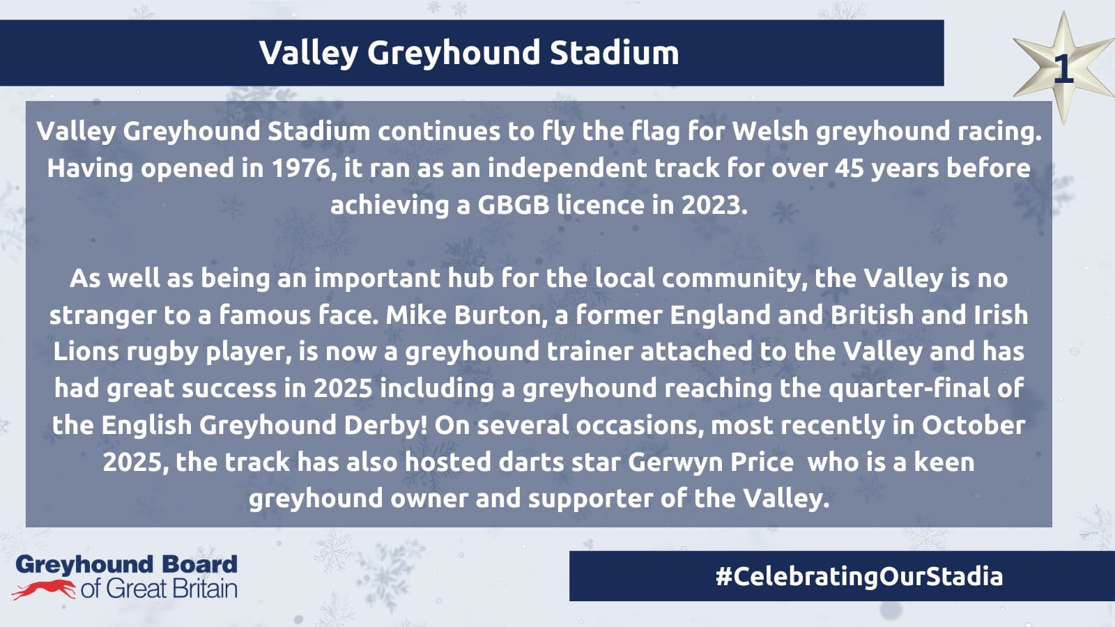 The series launched on Monday 1st December with Valley in Ystrad Mynach, the only greyhound stadium in Wales.