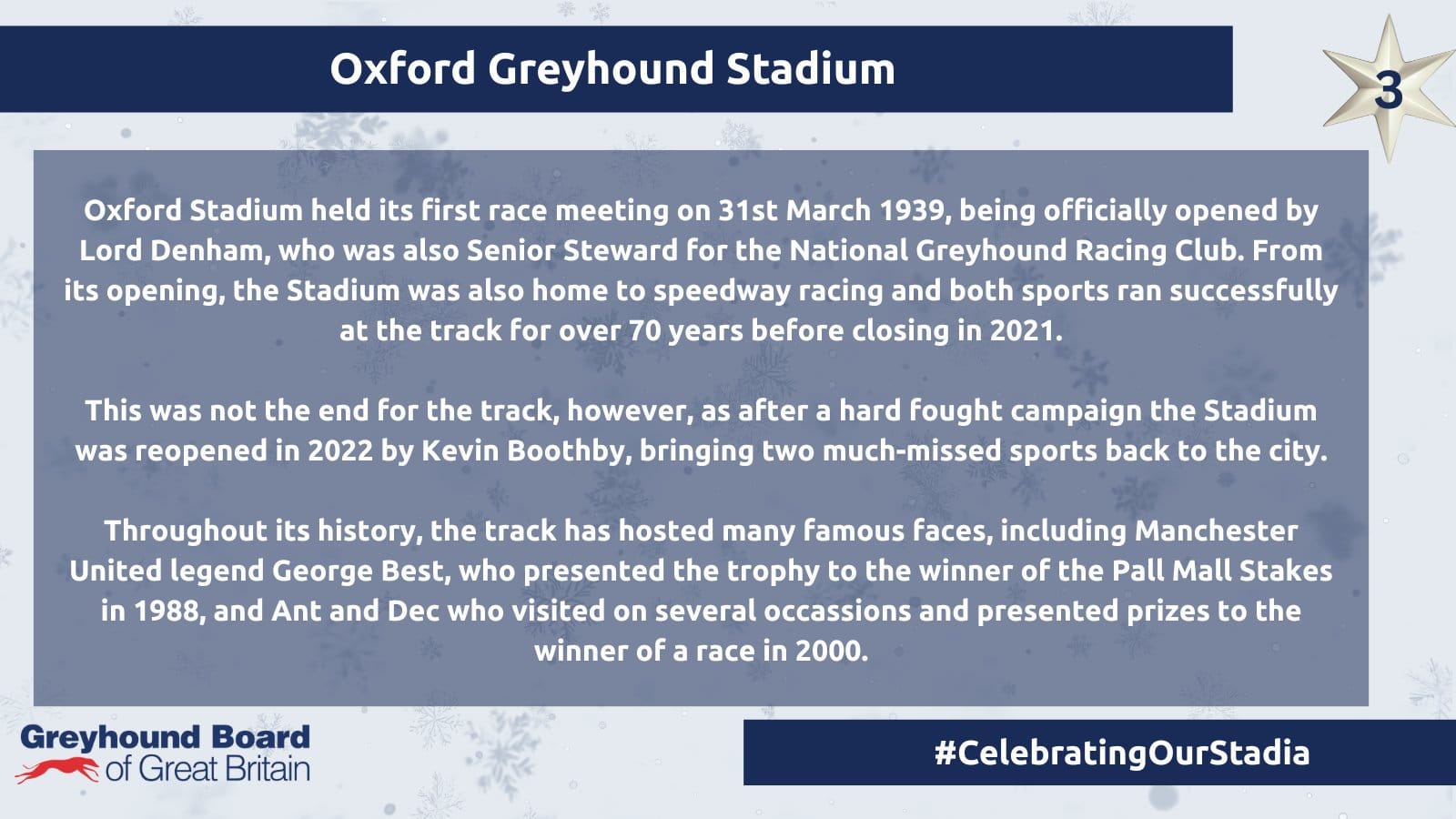 Oxford is one of the modern-day success stories in greyhound racing having been closed by the GRA in 2012 (not 2021 as graphic) but saved from redevelopment by a powerful local lobby group before eventually reopening ten years later.