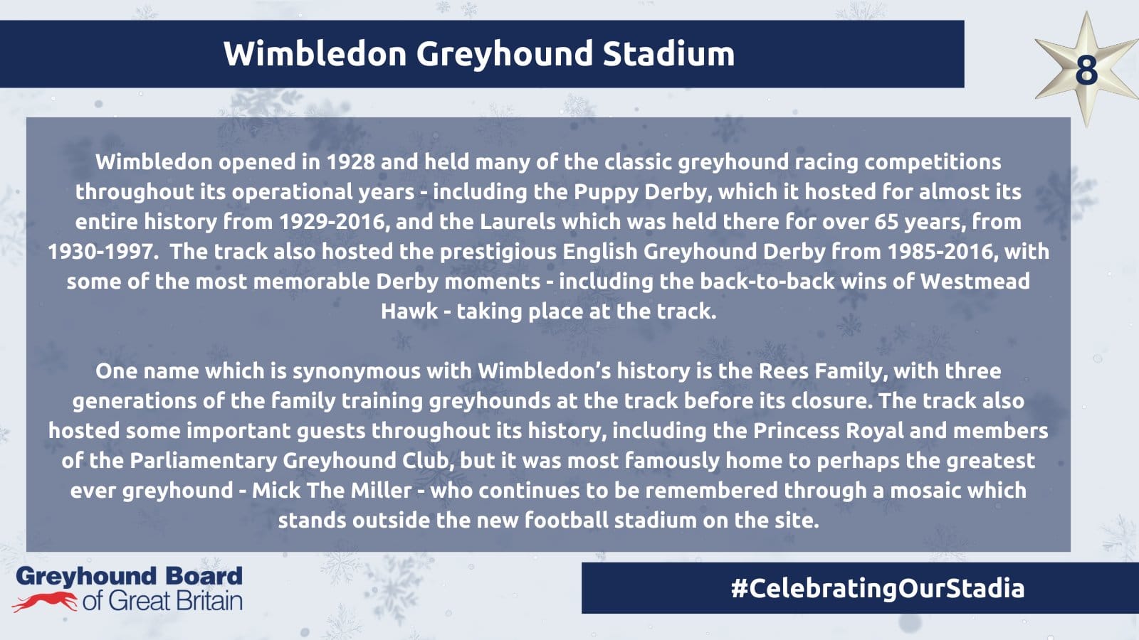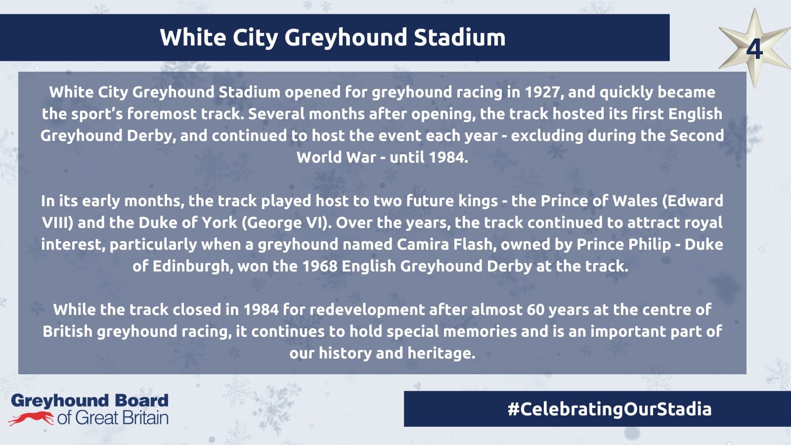 THE GBGB has launched the social media hashtag #CelebratingOurStadia with venues past and present to be featured.