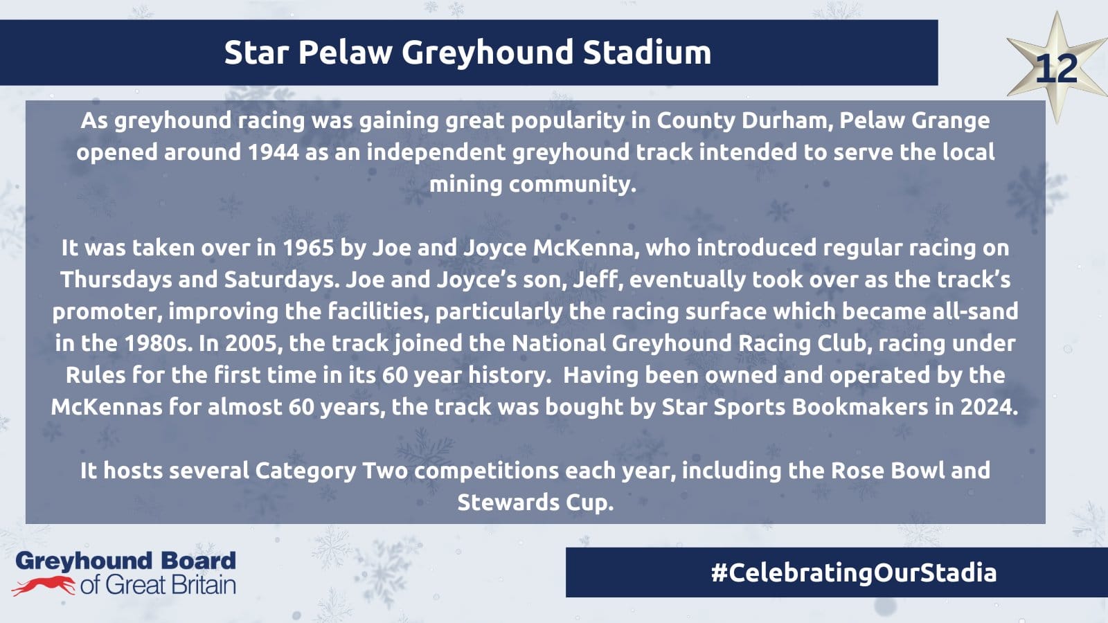 Star Pelaw, or Pelaw Grange as it was originally known, raced under independent rules for 60 years before switching to the NGRC, later GBGB, code.