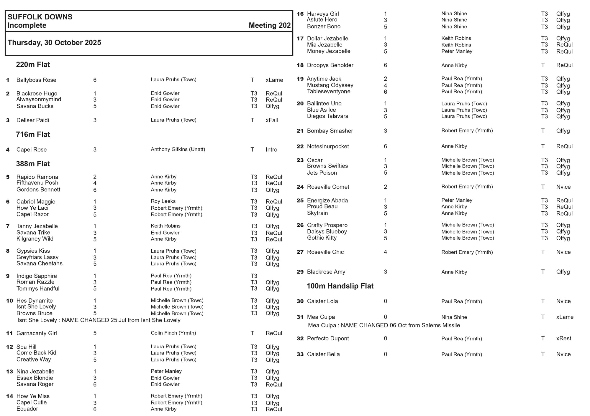 Additionally there are more than a dozen trainers represented which bodes well for the track's intended return to action provisionally pencilled in for some time in November.