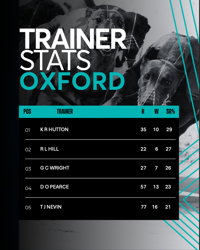 Oxford is the afternoon venue with Angie Kibble's Ballymac Shelly fancied to rebound from a troubled run latest to make it two wins in four starts at the track by landing an A2 over 450m at 4.37.