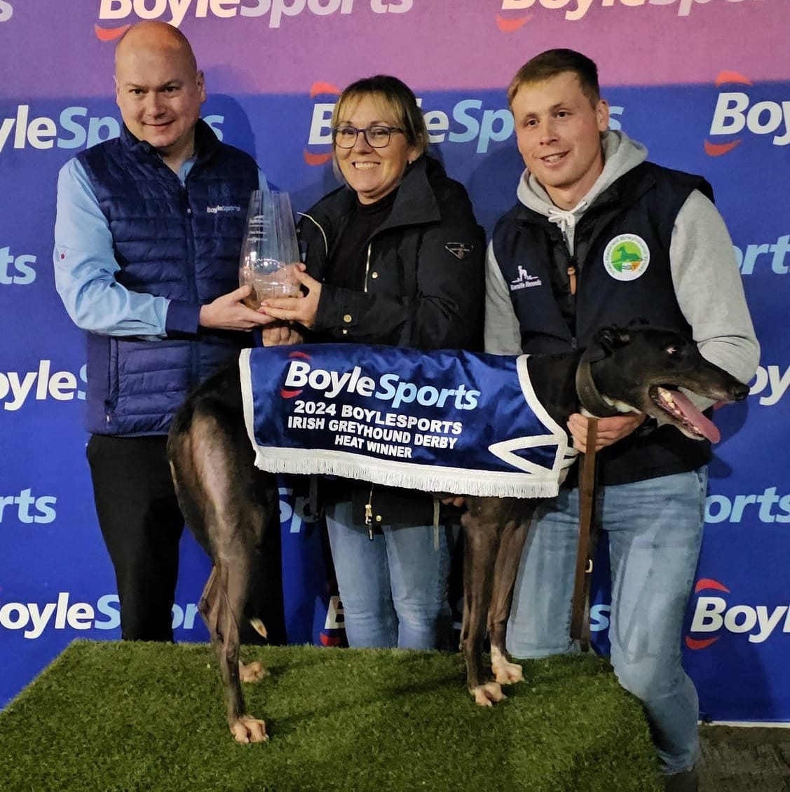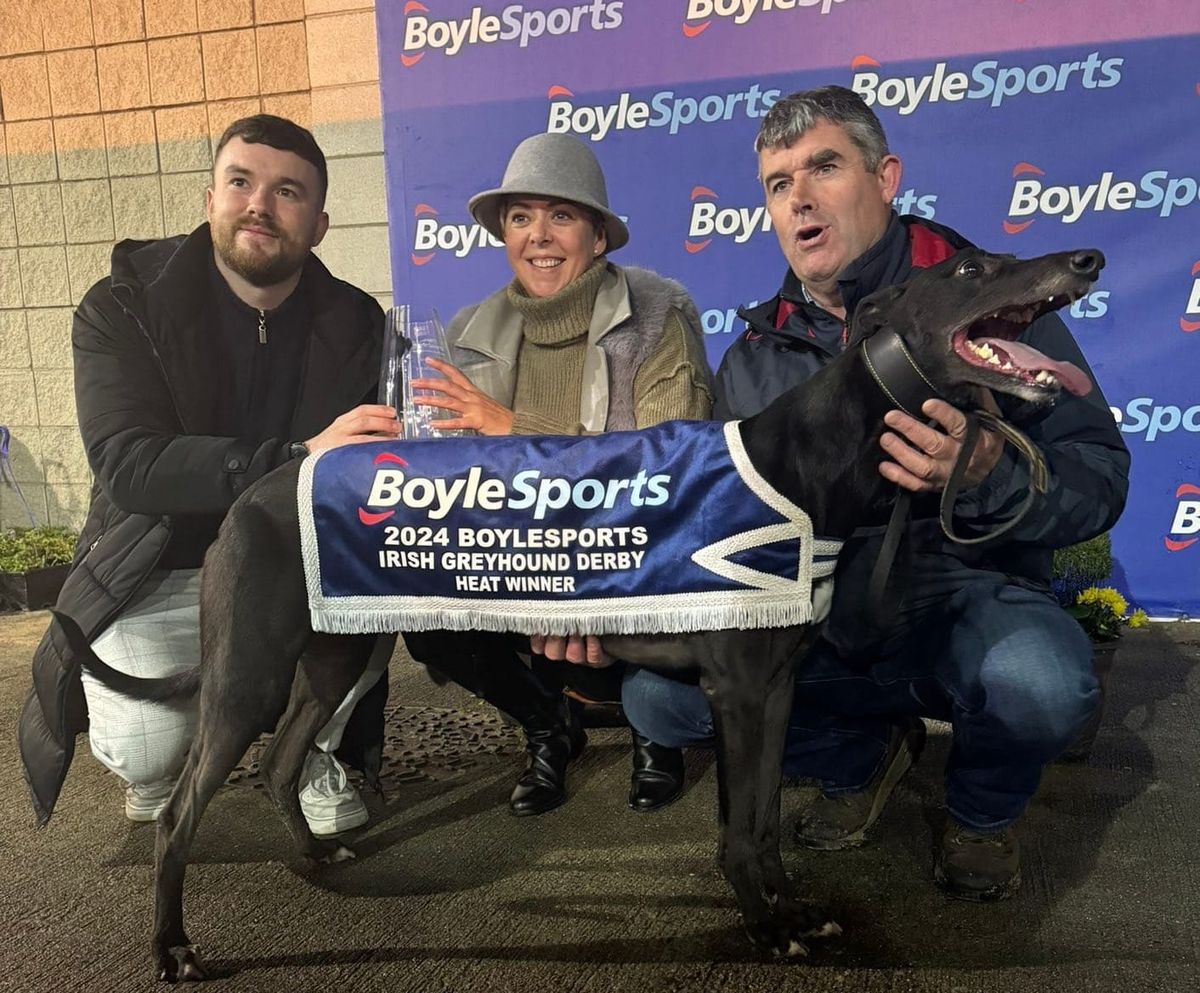 BALLINABOLA JIM produced the run of Saturday night in round two of the BoyleSports Irish Derby over 550 yards at Shelbourne Park. Completing a six-timer, Brendan Murphy‘s dog was soon in control and came home nine and a half lengths clear of Callaway Knegare in a superb 29.07sec.