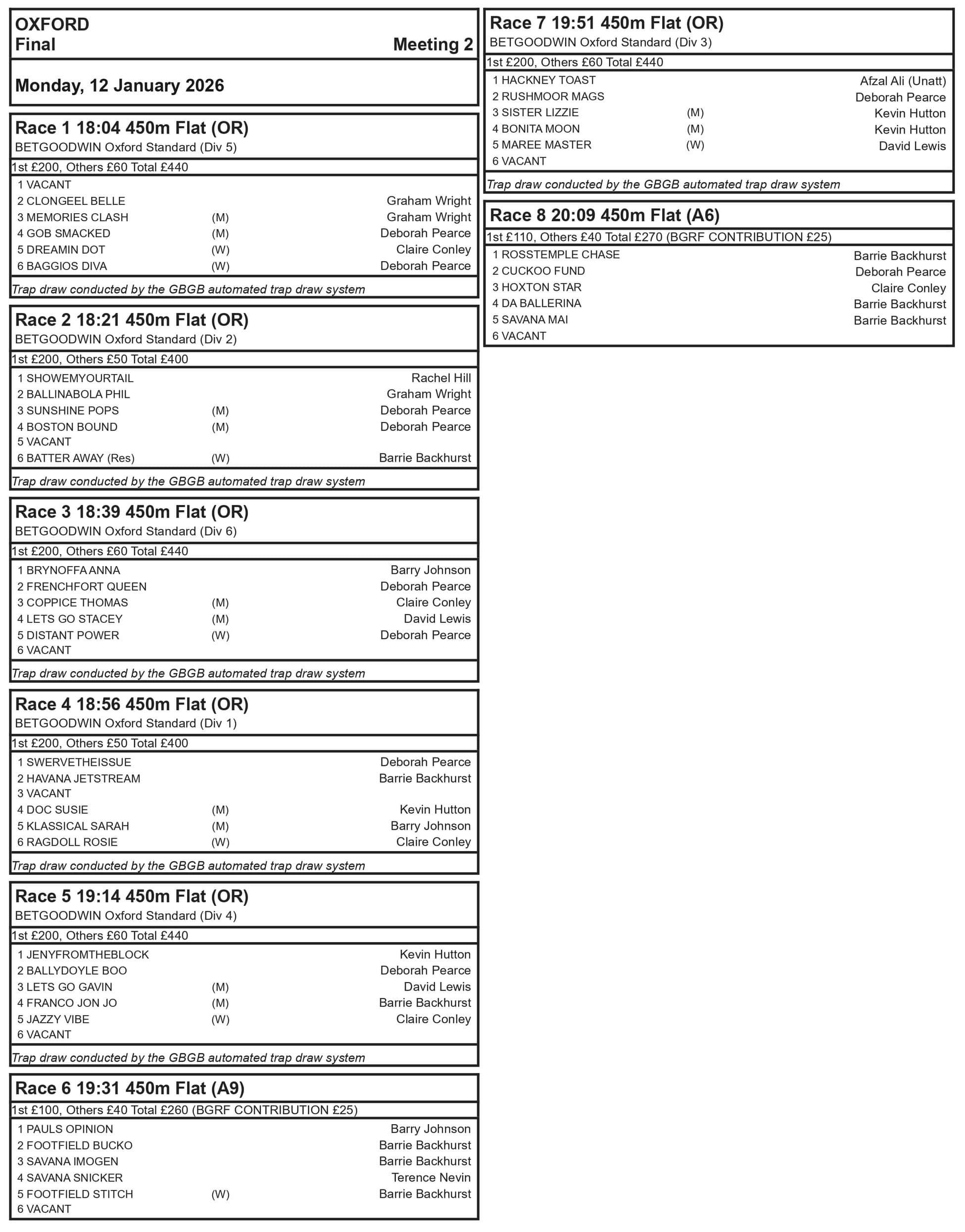 OXFORD has been forced to cancel Saturday evening's meeting due to a frozen track but the eight-race card has been rescheduled for Monday evening.