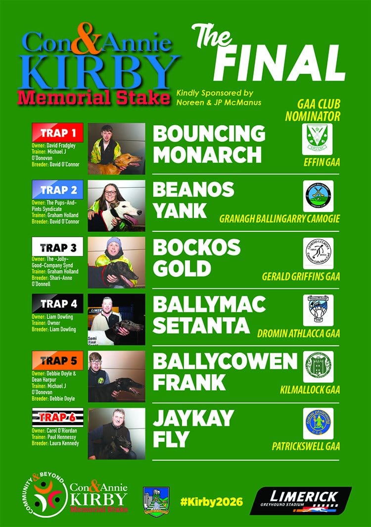 THE €80,000 Con & Annie Kirby Memorial final is the weekend highlight on sisracing.tv with the decider due off at 9.24pm on Saturday as the centrepiece of a 12-race card.