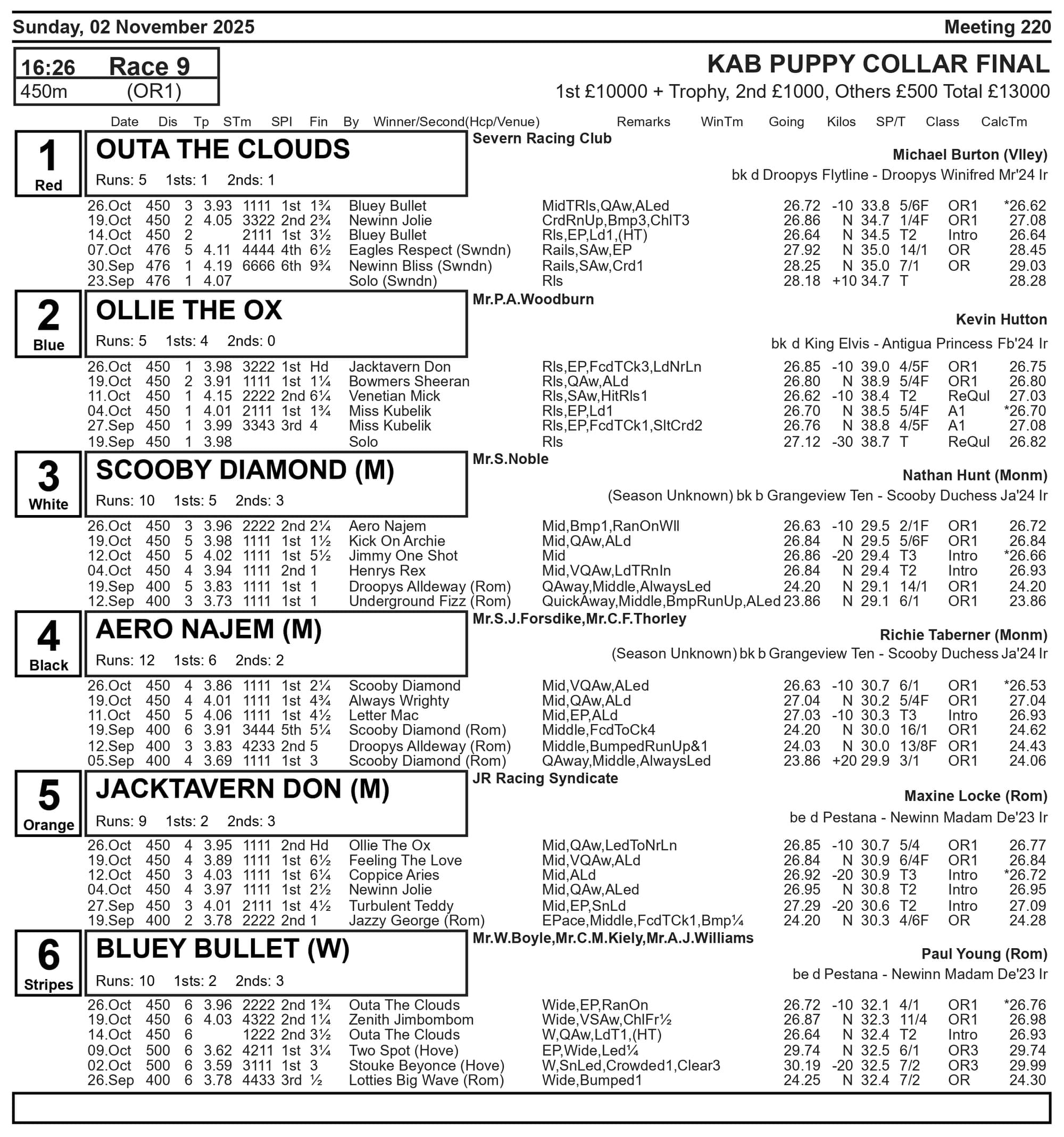 In doing so, Richie Taberner's youngster reversed Romford Puppy Cup semi-final form with the eventual champion of that competition, Scooby Diamond, making all for a two lengths plus victory in 26.63sec (-10).