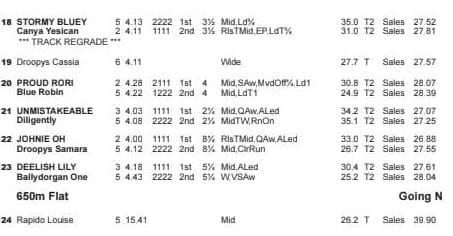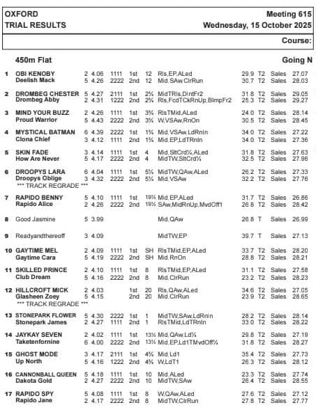 The May 2024 son of Dorotas Wildcat and Spooks Me was a wide-margin winner of his trial in a best-of-day 26.86sec (normal) for the 450m trip and was sold for £12,200 to an online bid.